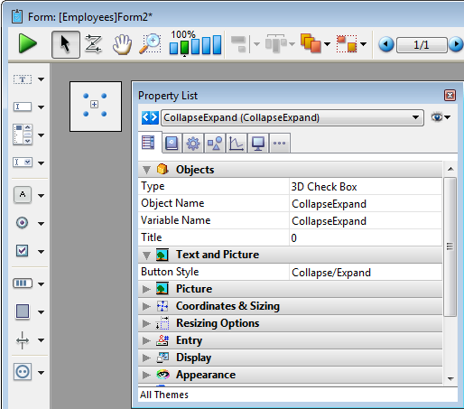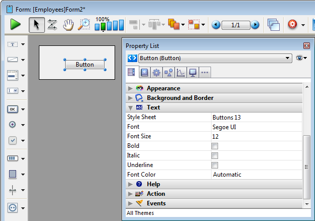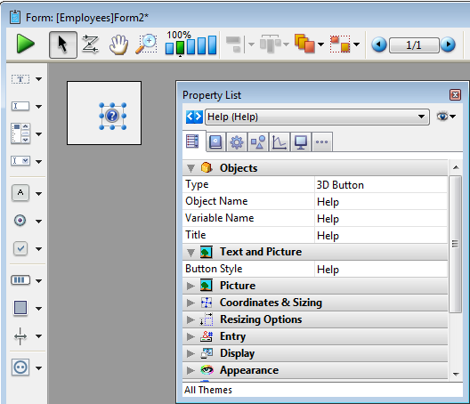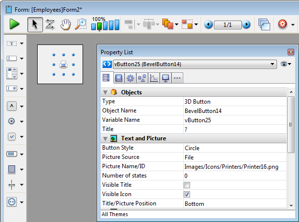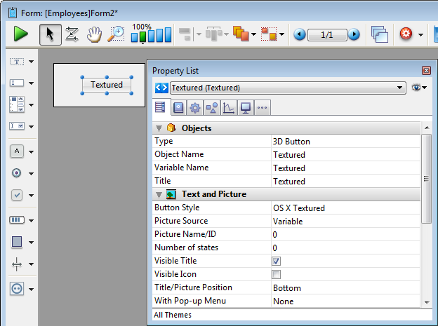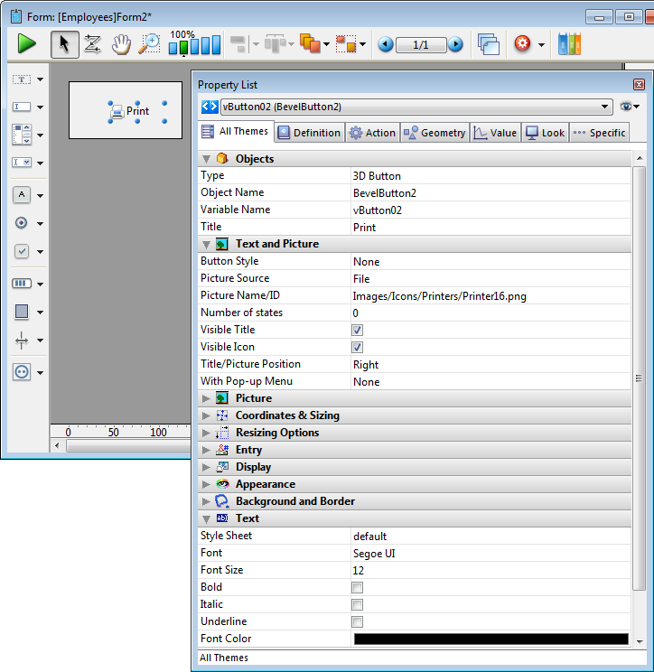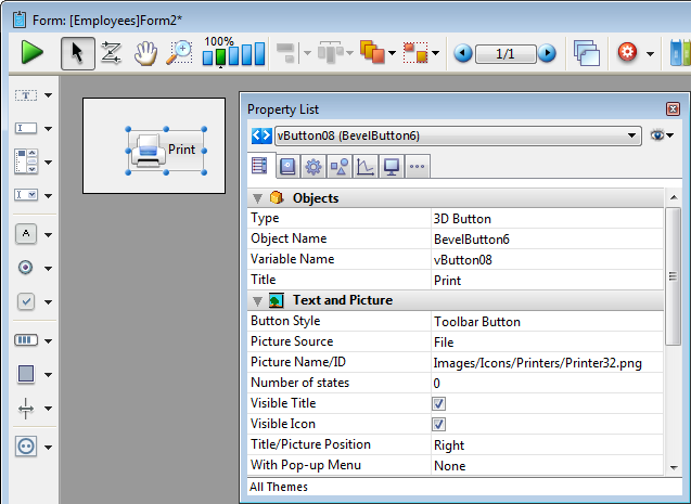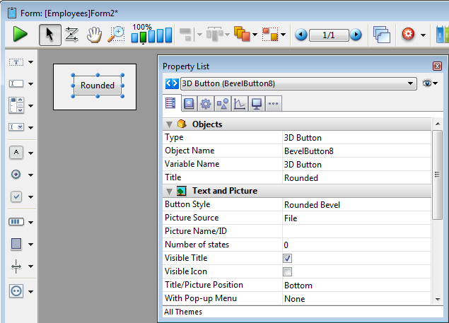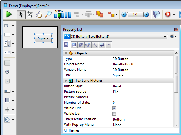 Pour plus d'information sur les boutons 3D sur les formulaires, référez-vous à la section Boutons 3D, Cases à cocher 3D et Boutons radio 3D.