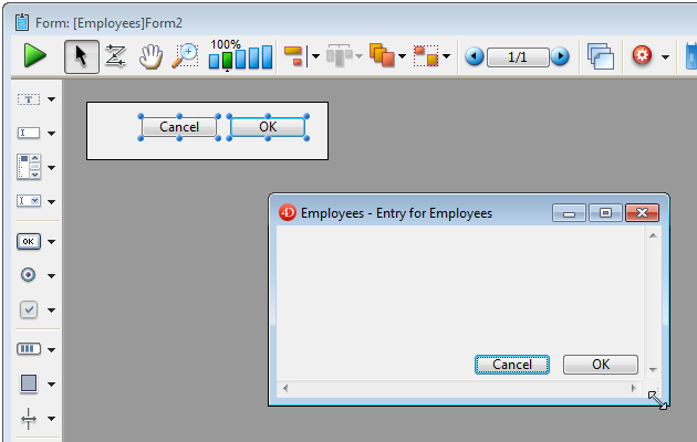 Pour plus d'information sur l'utilisation des boutons 3D sur un formulaire, référez-vous à la section Boutons 3D, Cases à cocher 3D et Boutons radio 3D.