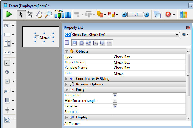 Ajoute une petite case à cocher (disponible sur Mac seulement). Vous pouvez utiliser la Liste des Propriétés pour modifier ses propriétés.