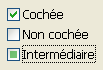 Astuce : En saisie, les cases à cocher à trois états affichent séquentiellement chaque état, dans l’ordre suivant : non coché / coché / intermédiaire / non coché, etc. L’état intermédiaire étant généralement inutile en saisie, il vous suffit, dans le code, de “forcer” la valeur de la variable à 0 lorsqu’elle prend la valeur 2 afin de passer directement de l’état coché à l’état non coché.