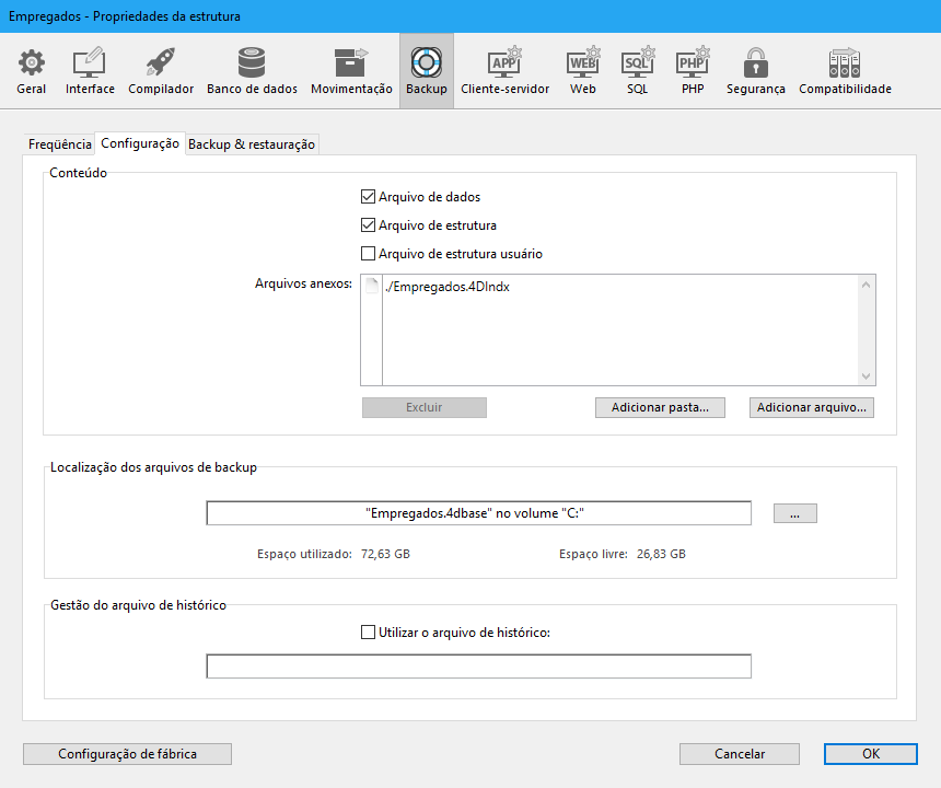 • Arquivo de estrutura: arquivo de estrutura do banco. Em casos de bancos compilados esta opção permite fazer o backup do arquivo 4dc