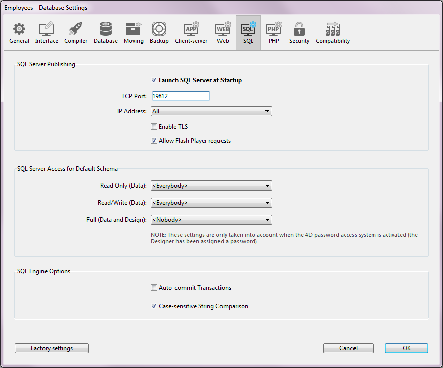4D SQLサーバの設定