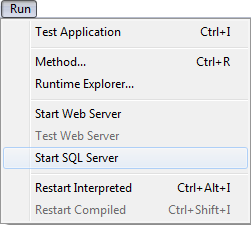 • 4Dアプリケーションの実行メニューから、SQLサーバ開始/SQLサーバ停止コマンドを選択する: