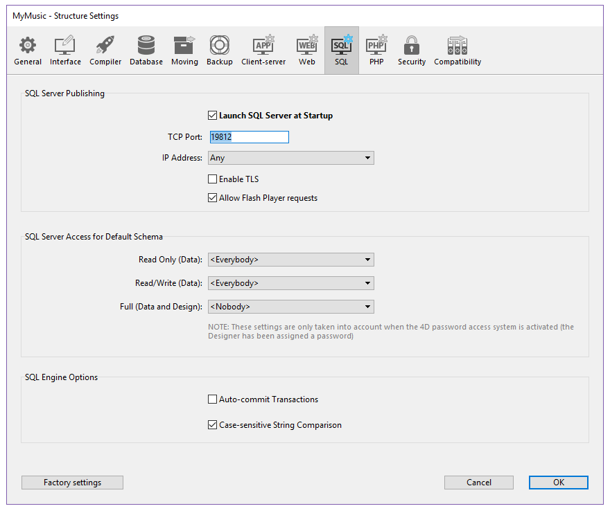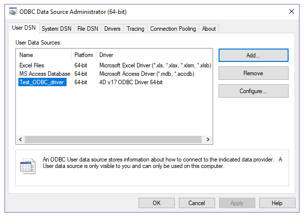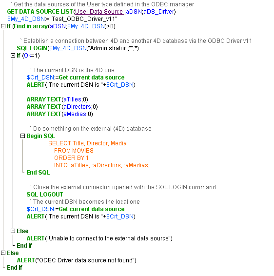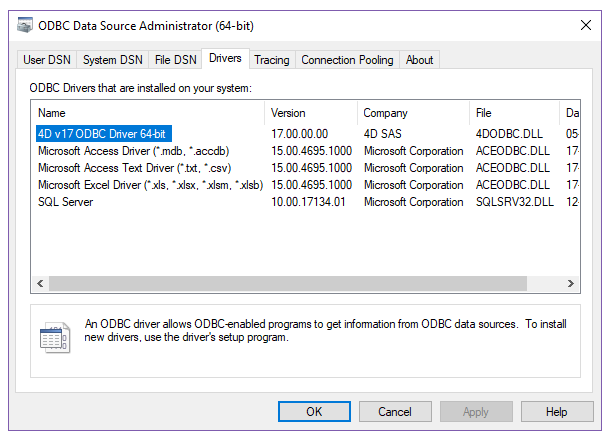 Connection to the 4D SQL engine via the ODBC Driver
