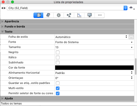 Esta propriedade é encontrada no tema “Entrada” da Lista de propriedades para os objetos ativos (editáveis ou não) como también para los campos no editables.