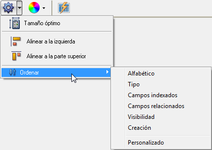 Tipo: muestra los campos ordenados en función del tipo por orden alfabético creciente.