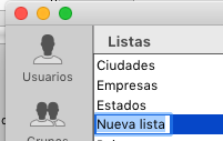 Puede renombrar una lista en cualquier momento seleccionando el comando Renombrar del menú contextual o utilizando el atajo Alt+clic (Windows) u Opción+clic (Mac OS) o simplemente haciendo clic dos veces en la lista que quiere renombrar.