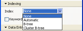 - キーワードインデックス: このインデックスは文字、テキストおよびピクチャーフィールドで使用できます。テキスト内部の検索を容易にする目的で使用されます。またピクチャーの場合は、ピクチャーに割り当てたキーワードで検索を行うために使用できます。