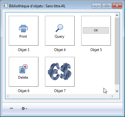 A l’aide des bibliothèques d'objets, vous pouvez constituer des fonds d’objets de formulaires regroupés par familles graphiques, par fonctionnalités, etc. Ces bibliothèques étant stockées sous forme de fichiers externes, leur utilisation parmi différentes bases est d’une grande simplicité.