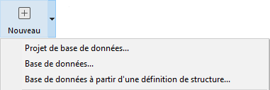 Note de compatibilité : Les éléments Base de données... et Base de données à partir d'une définition de structure... ne s'affichent plus par défaut (4D recommande l'utilisation de l'architecture projet pour un nouveau développement). Pour les afficher, vous devez sélectionner l'option dans les Préférences.