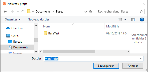 Note : Il n'est pas possible de créer une base projet depuis une définition de structure.