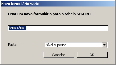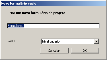 Se você selecionar um nome de pasta, o formulário será localizado nesta pasta. As pastas permitem organizar os objetos de suas aplicações e são administrados através da página Página Início do Explorador. Por padrão, é criado o formulário em nível superior, ou seja, fora das pastas.