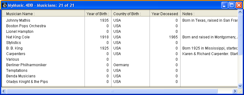 4D can create from 1 to 32 767 tables per database. This means that you can create a structure that is precisely adapted to your needs.