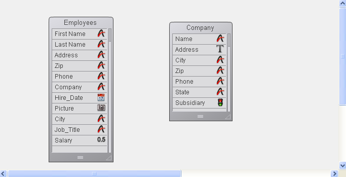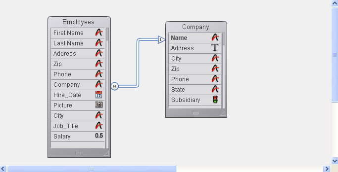 The figure below shows a relation created between the [Employees] table and the [Companies] table in the Structure editor: