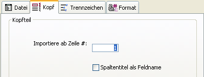 (Optional) Bestimmen Sie weitere Optionen über die Seiten Kopf, Trennzeichen, Füllen bzw.Format. Weitere Informationen dazu finden Sie im Abschnitt Importoptionen.