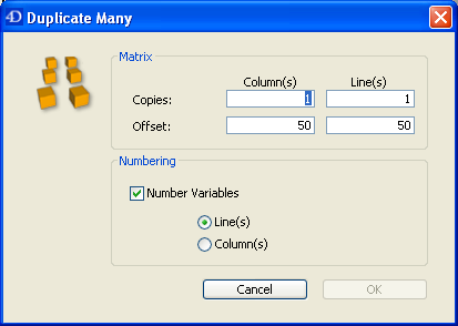 To duplicate one or several objects using the Duplicate Many dialog box: