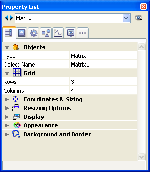 Make sure that each cell in the matrix is large enough to contain the object you want to duplicate. - In the “Grid” theme of the Property List, set the number of rows and columns of the Matrix.