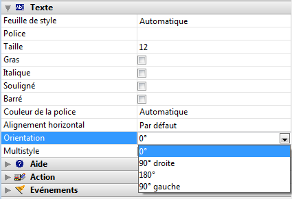 A l’inverse, si vous cochez la propriété Saisissable ou Focusable pour un objet orienté, la propriété d’orientation est automatiquement réinitialisée à 0°.