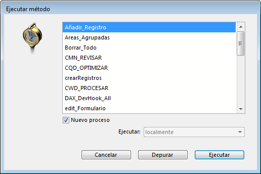 - desde la caja de diálogo de ejecución de métodos (métodos de proyecto únicamente).