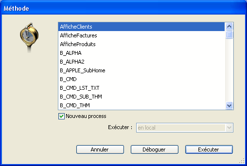 - depuis la boîte de dialogue d’exécution de méthodes (méthodes projet uniquement).