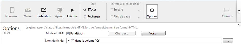 Lorsque la destination de l'état est "HTML", les options suivantes sont disponibles :