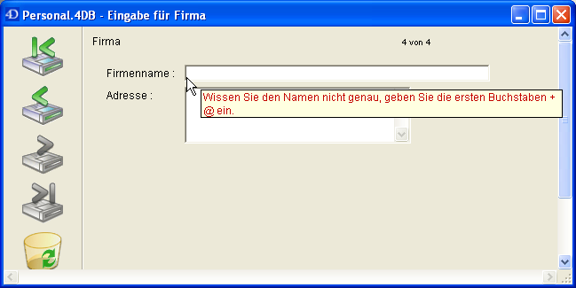 Hinweis: Über den Selektor Tips enabled des Befehls SET DATABASE PARAMETER lassen sich Hilfetipps für die gesamte Anwendung deaktivieren oder aktivieren.