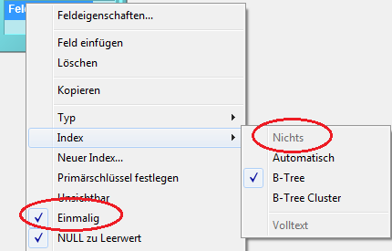 Wollen Sie den Index zu einem einmaligen Feld entfernen, müssen Sie zuvor die Eigenschaft Einmalig deaktivieren.