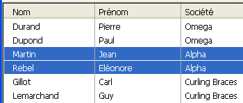 • Pour sélectionner un enregistrement, cliquez dessus ou appuyez sur la touche flèche haut ou flèche bas. Un enregistrement est sélectionné. Si vous avez utilisé les touches fléchées, le premier ou le dernier enregistrement de la liste est sélectionné.