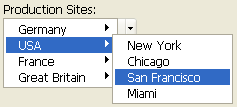 Ein hierarchisches PopUp-Menü weist ein Untermenü auf, das jeder Zeile im Menü zugeordnet ist. Hier ein Beispiel für ein hierarchisches Menü: