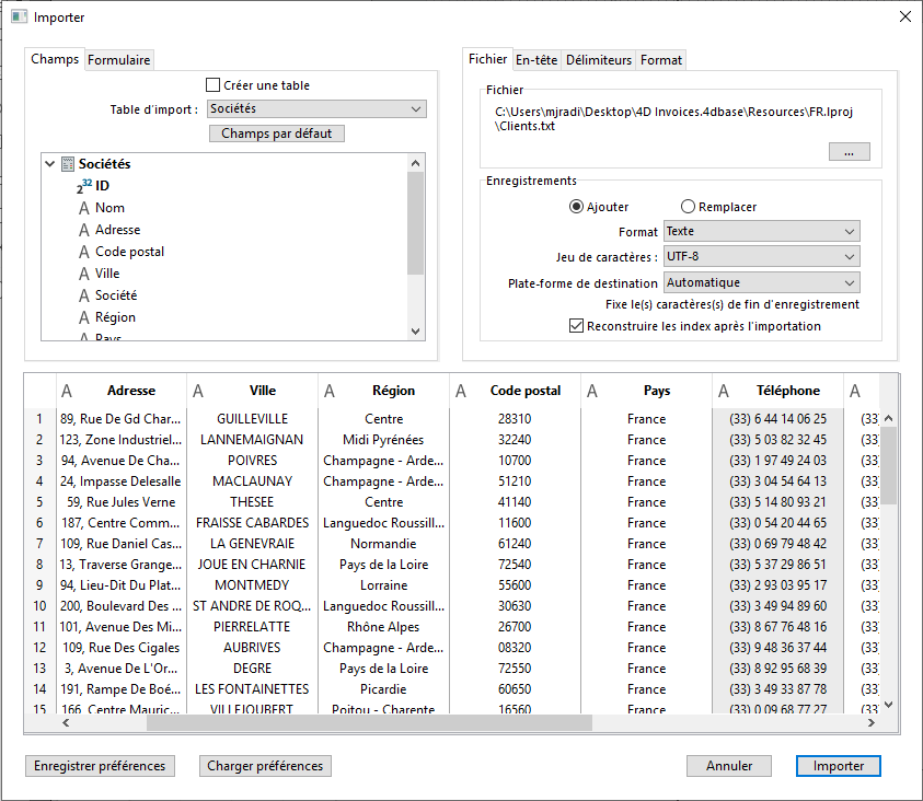 Note 4D Server : Il n’est pas possible d’importer des données à l’aide d’un formulaire comportant des méthodes dans une procédure stockée sur le serveur. En effet, les événements formulaire n’étant pas gérés sur le serveur, les méthodes associées ne seront pas appelées.