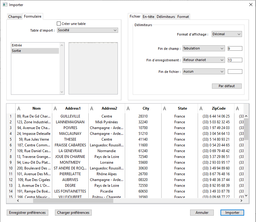 Une fois l’importation effectuée, la boîte de dialogue est refermée et la table dans laquelle les données ont été importées devient la table courante.