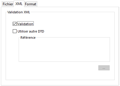 Note : Pour plus d’informations sur la DTD, reportez-vous au paragraphe Page XML