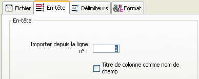 • Importer de la ligne n° : permet de définir à partir de quelle ligne 4D doit importer les données. Cette option est particulièrement utile dans le cas où le fichier d’import débute par des lignes non formatées (titre, date, etc.), car les colonnes d’import sont calculées à partir du format de la première ligne.
