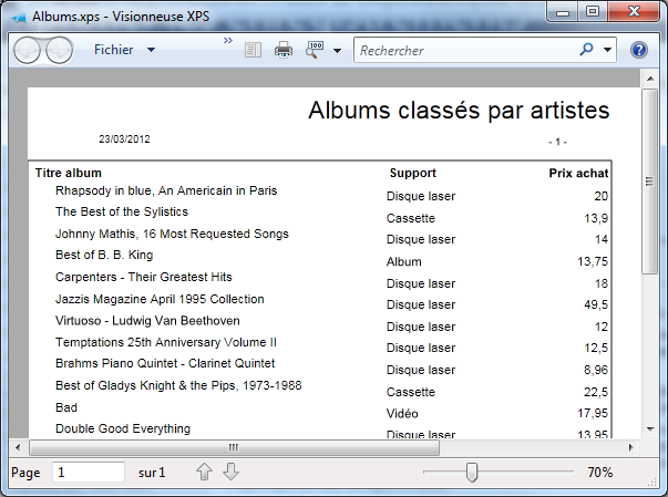 La visualisation s’effectue dans un lecteur XPS, disponible nativement ou via Internet Explorer, en fonction de la version de Windows.