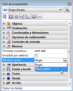 • Para las reglas, estas variantes se definen vía la propiedad Mostrar como del tema "Mostrar" de la Lista de propiedades: