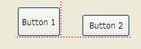 オブジェクトを均等配置する場合、4Dはインターフェース標準に基づいてオブジェクト間の距離を提示します。マグネティック整列と同様に、均等配置が決定した時点で、その間隔が分かりやすいように赤いラインで表わします。