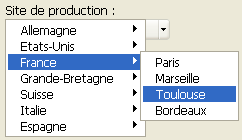 Un menu déroulant hiérarchique possède un sous-menu associé à chacune de ses lignes. Voici un exemple de menu déroulant hiérarchique :