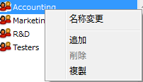 グループリスト上で右クリックし、コンテキストメニューから追加または複製を選択する。