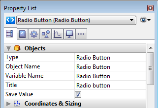 | Botón de radio 3D | Valor de la variable asociada (0, 1) |