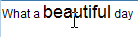 <SPAN STYLE="font-family:'Arial';font-size:9pt;text-align:left;font-weight:normal;font-style:normal;text-decoration:none;color:#000000;background-color:#FFFFFF">What a <SPAN STYLE="font-size:13.5pt">beautiful</SPAN> day!</SPAN>