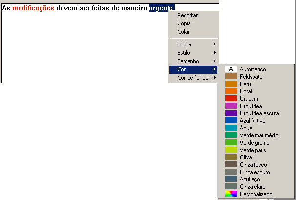 Os atributos disponíveis são fonte, tamanho, estilo, cor do texto e (apenas em Windows) cor de fundo. Para modificar os atributos de estilo em uma área de texto enriquecido, há duas possibilidades diferentes: