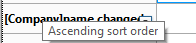Una vez que se define la ordenación, se agrega una nueva líinea de ruptura al informe rápido. Puede ver la ordenación en cualquier momento al pasar el cursor por encima del encabezado de la nueva línea de ruptura: