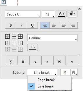 Para definir o espaçamento de una fila de subtotal, selecione uma fila de subtotal e abra sua janela contextual associada  ou no menú contextual (área incluida). Têm as opções abaixo: