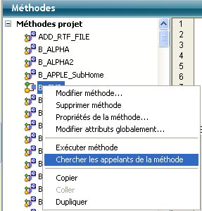 En cas de duplication ou si une méthode de même nom existe déjà à l’endroit ou vous collez la méthode, un numéro est accolé au nom de la méthode ajoutée, par exemple Maméthode1. Ce numéro est incrémenté si nécessaire (Maméthode2, Maméthode3, etc.).