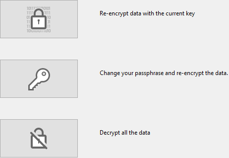 Click on Change your passphrase and re-encrypt data.