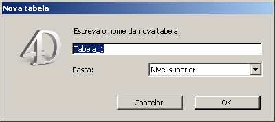 Pode colocar um novo objeto diretamente numa nova pasta durante sua criação. O menu "Pasta", localizado nas caixas de diálogo de criação de tabelas, formulários e métodos projeto, permite selecionar a pasta na qual criar o objeto. Como padrão, os objetos são criados no primeiro nível (Nível superior) ou na última pasta selecionada no Explorador (se aplicável). O menu de seleção está, por exemplo, presente na caixa de diálogo de criação de tabelas como se mostra na seguinte imagem: