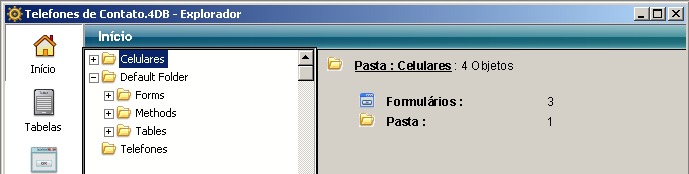 Os objetos de tipo Tabela, Formulário e Método projeto podem se localizar em pastas. Também é possível criar sub-pastas em diferentes níveis.