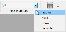 You can specify the type of element to look for using the Find menu. The following choices are available: