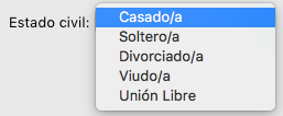Cuando se ejecuta el formulario, 4D gestiona automáticamente el menú desplegable o el combo box durante la entrada o la visualización: cuando un usuario elige un valor, se guarda en el campo, cuando se muestra el formulario, este valor de campo se muestra en el menú desplegable: