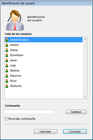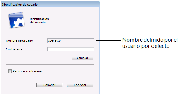 - Por defecto, se muestra la caja de diálogo Identificación de usuario: